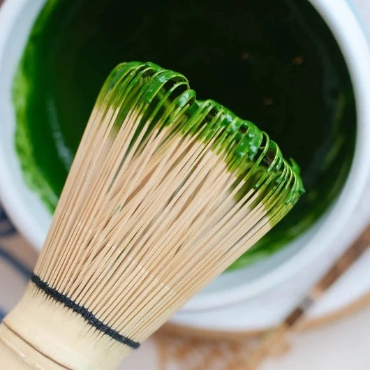 Para preparar un matcha correctamente es necesario utilizar el batidor sujetado con los dedos índice, anular y pulgar, con rápidos movimientos de muñeca en zigzag, como si estuviéramos dibujando la letra W o la letra M, rápidamente hasta que el té se vuelva espumoso.Para evitar romper o doblar las hechas de bambú no intentes rayar ni empujar contra el fondo del cuenco.